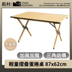 【拓村】戶外/露營 加高加寬三角結構 輕量摺疊蛋捲桌(木紋色87x62cm)