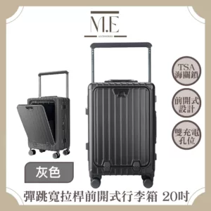 【M.E】彈跳寬拉桿 前開式四六開/雙充電孔/TSA海關鎖行李箱 20吋 白