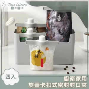 【Time Leisure 品閒】廚衛家用 旋蓋卡扣式密封保鮮防潮封口夾 四入