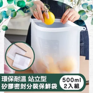 【儀家生活館】環保耐溫 站立型矽膠密封分裝保鮮袋(1000ml兩入)