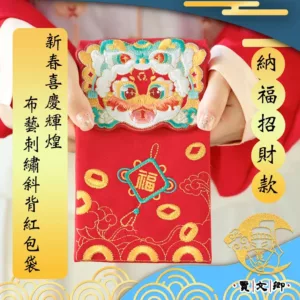【賈文卿】新春喜慶輝煌 布藝刺繡斜背紅包袋 納福招財款