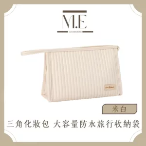 【M.E】三角化妝包 大容量防水旅行收納袋PU便攜化妝包 米白