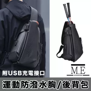 【M.E】潮酷運動球拍胸背包/防潑水後背包-附USB充電接口