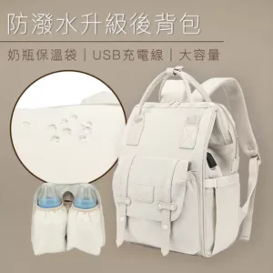 【M.E】升級USB多功能豪華容量高密度防潑水媽咪包/外用後背包 米白色