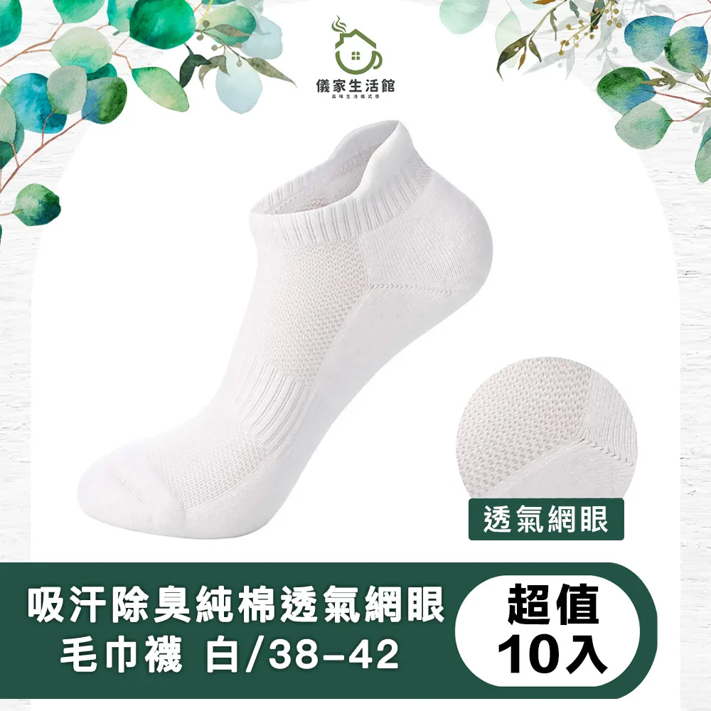 【儀家生活館】吸汗除臭純棉透氣網眼毛巾襪 白/38-42 超值10入
