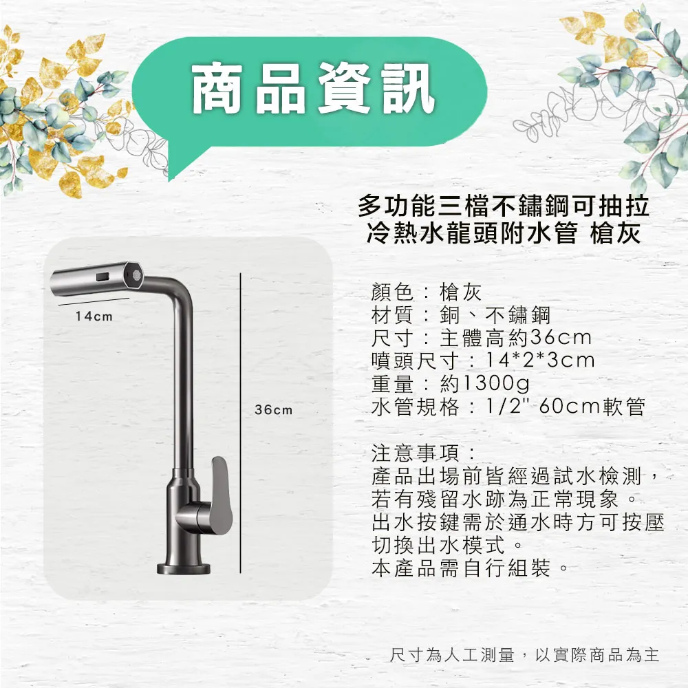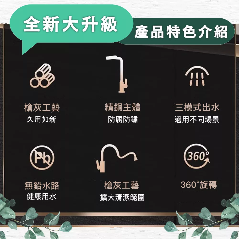 優選升級,防污防鏽,久用如新 多功能出水嘴,按壓切換 水鍍槍灰工藝,防鏽防指紋
