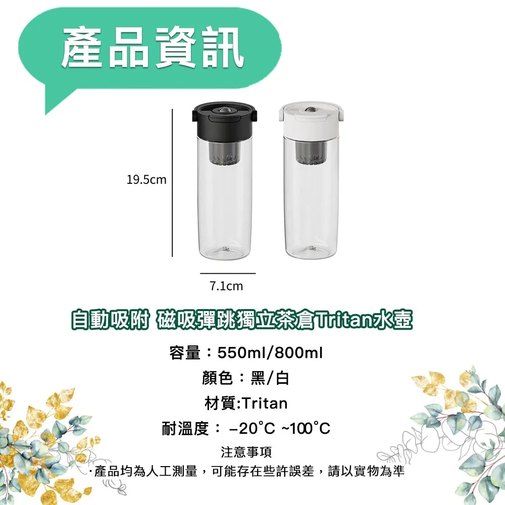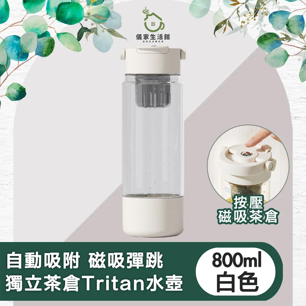 【儀家生活館】自動吸附 磁吸彈跳獨立茶倉Tritan水壺(800ml)