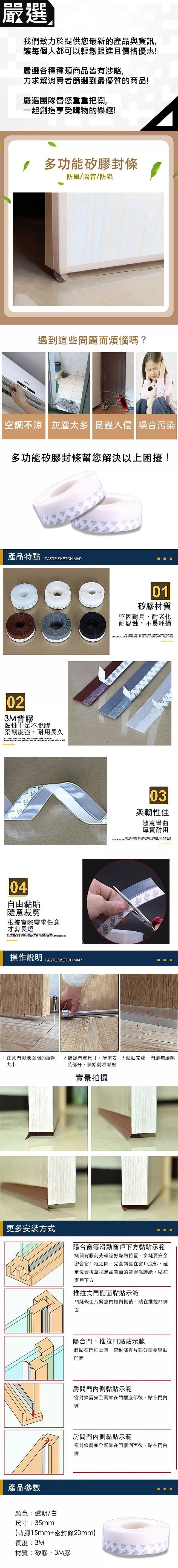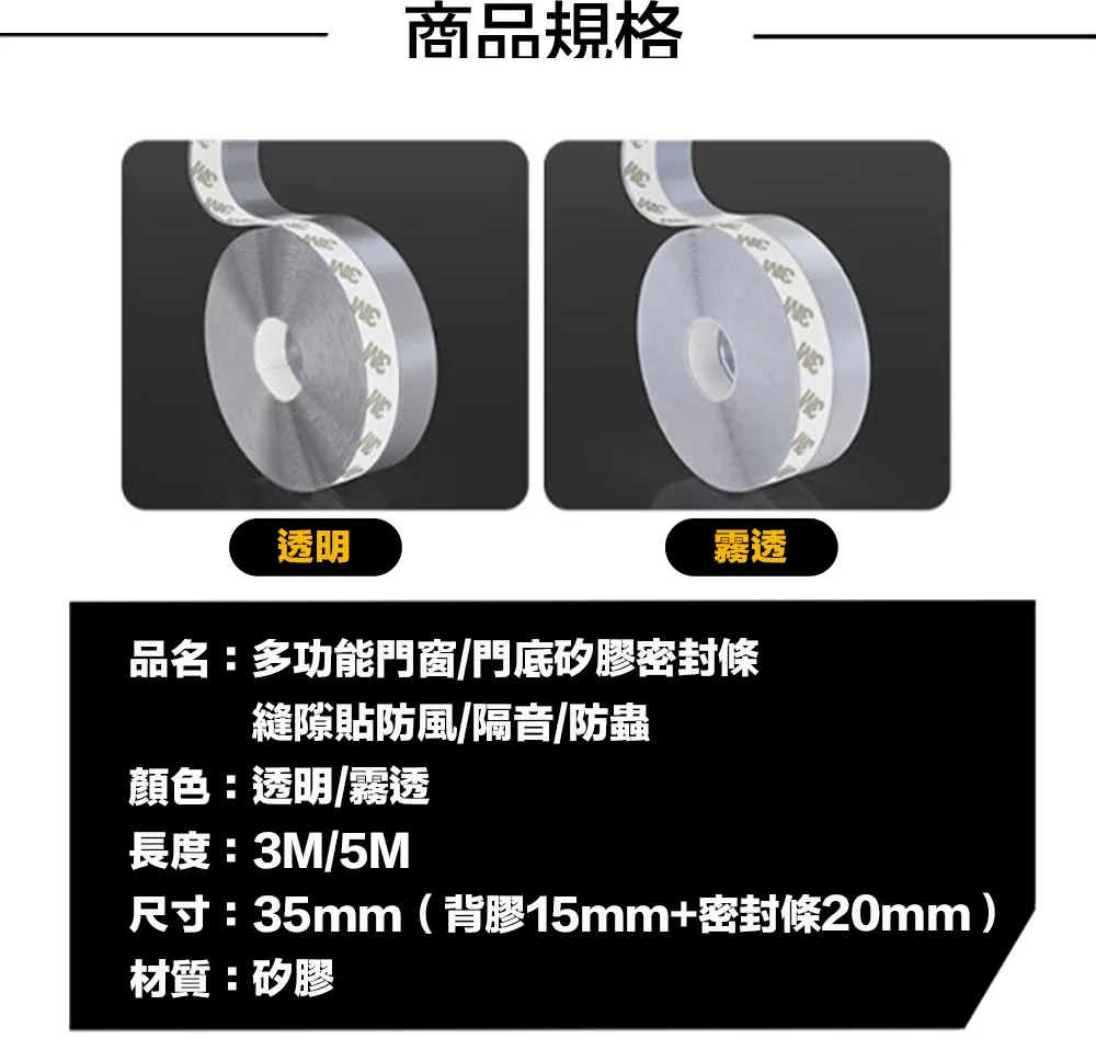 【嚴選】多功能門窗/門底矽膠密封條/縫隙貼防風/隔音/防蟲(3M/透明)