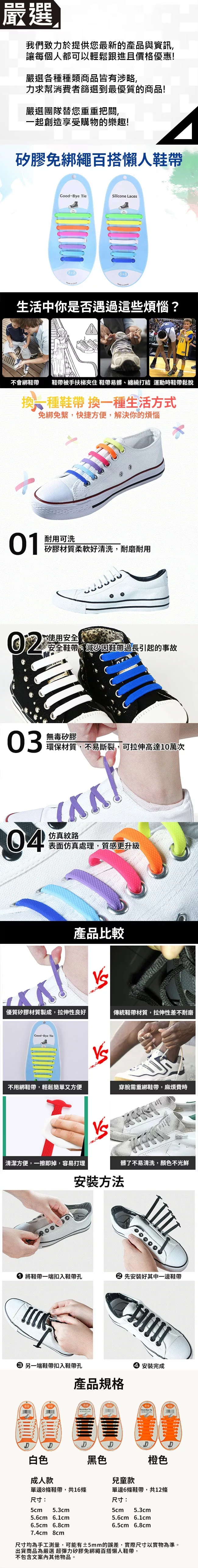 / 【嚴選】超彈力矽膠免綁繩百搭懶人鞋帶 兒童/1雙入