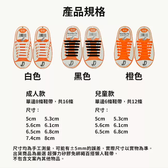 【嚴選】超彈力矽膠免綁繩百搭懶人鞋帶 兒童/1雙入 數量
