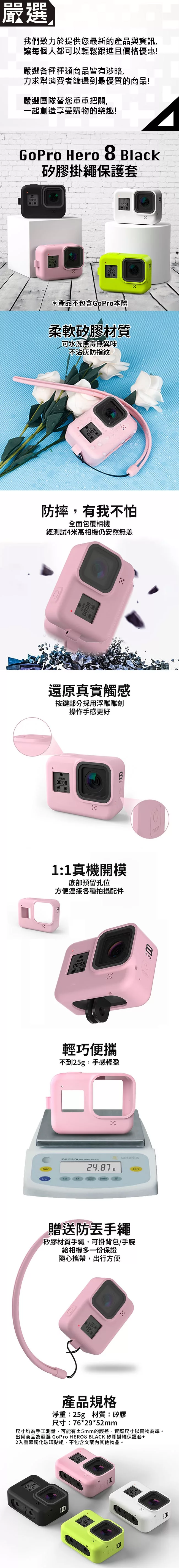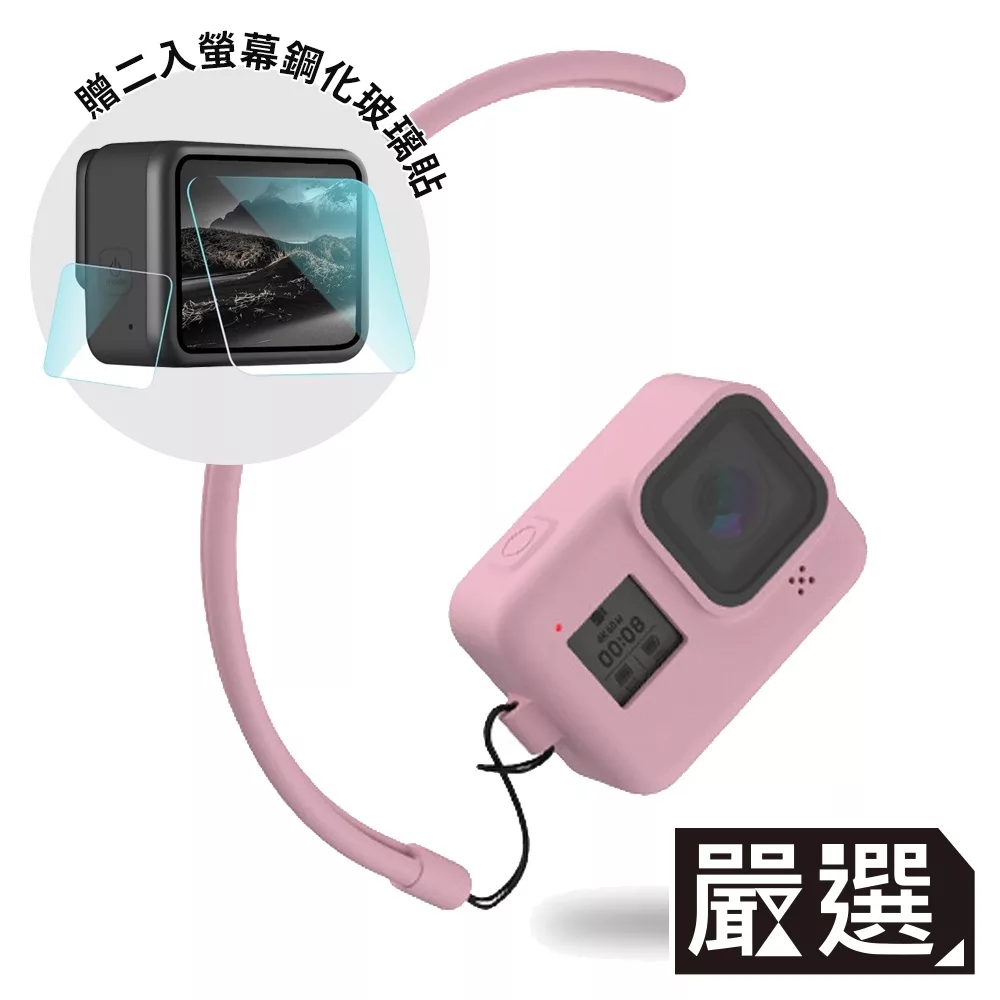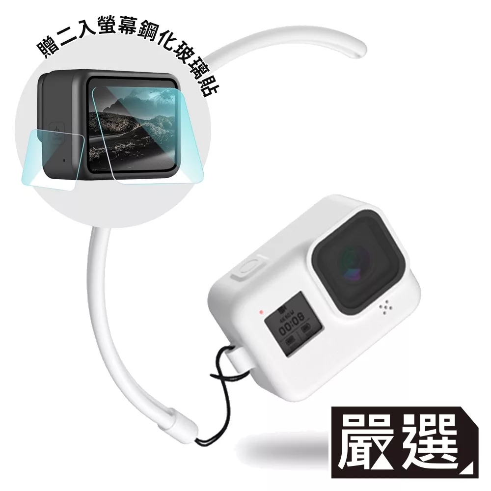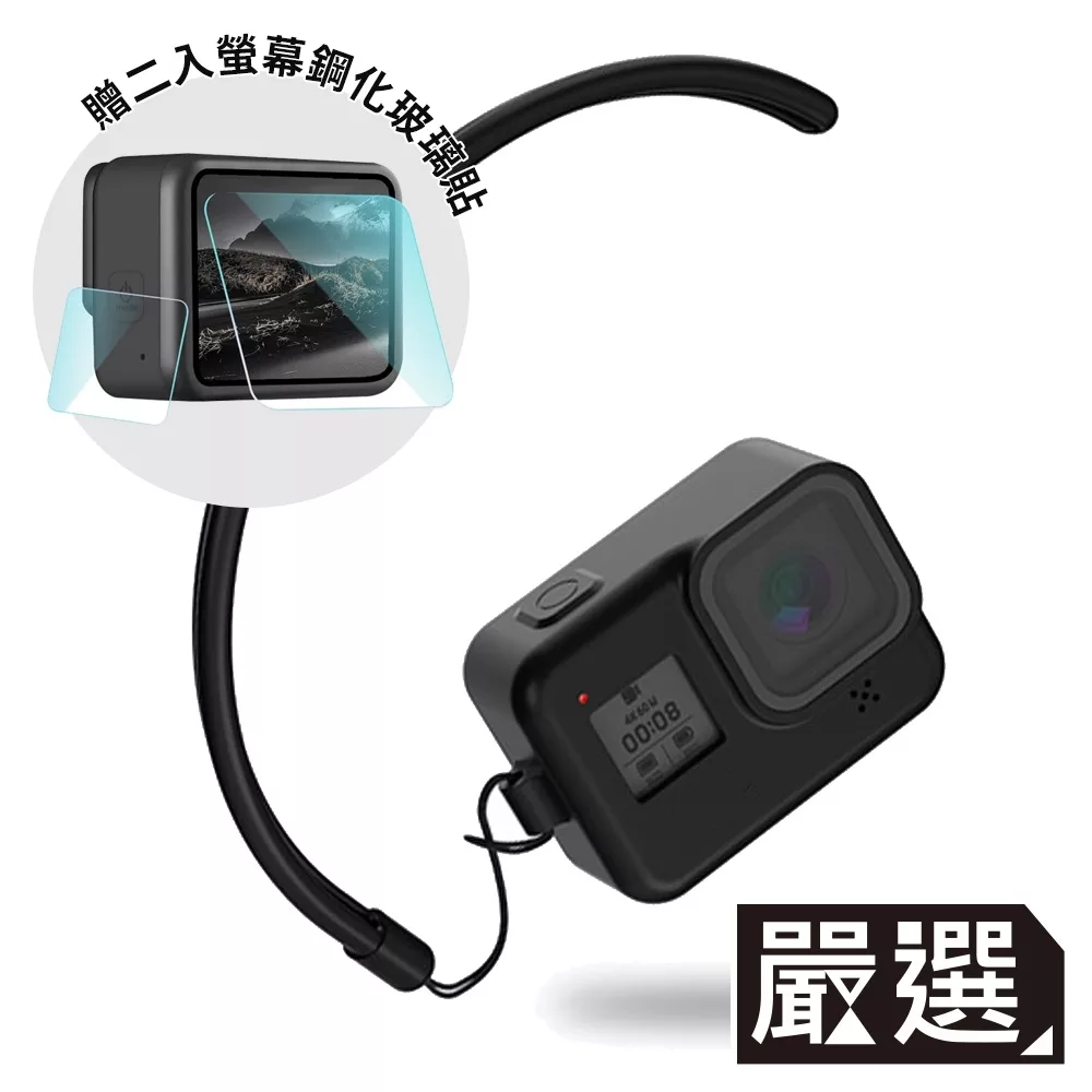 / 【嚴選】GoPro HERO8 BLACK 矽膠掛繩保護套+2入螢幕鋼化玻璃貼組