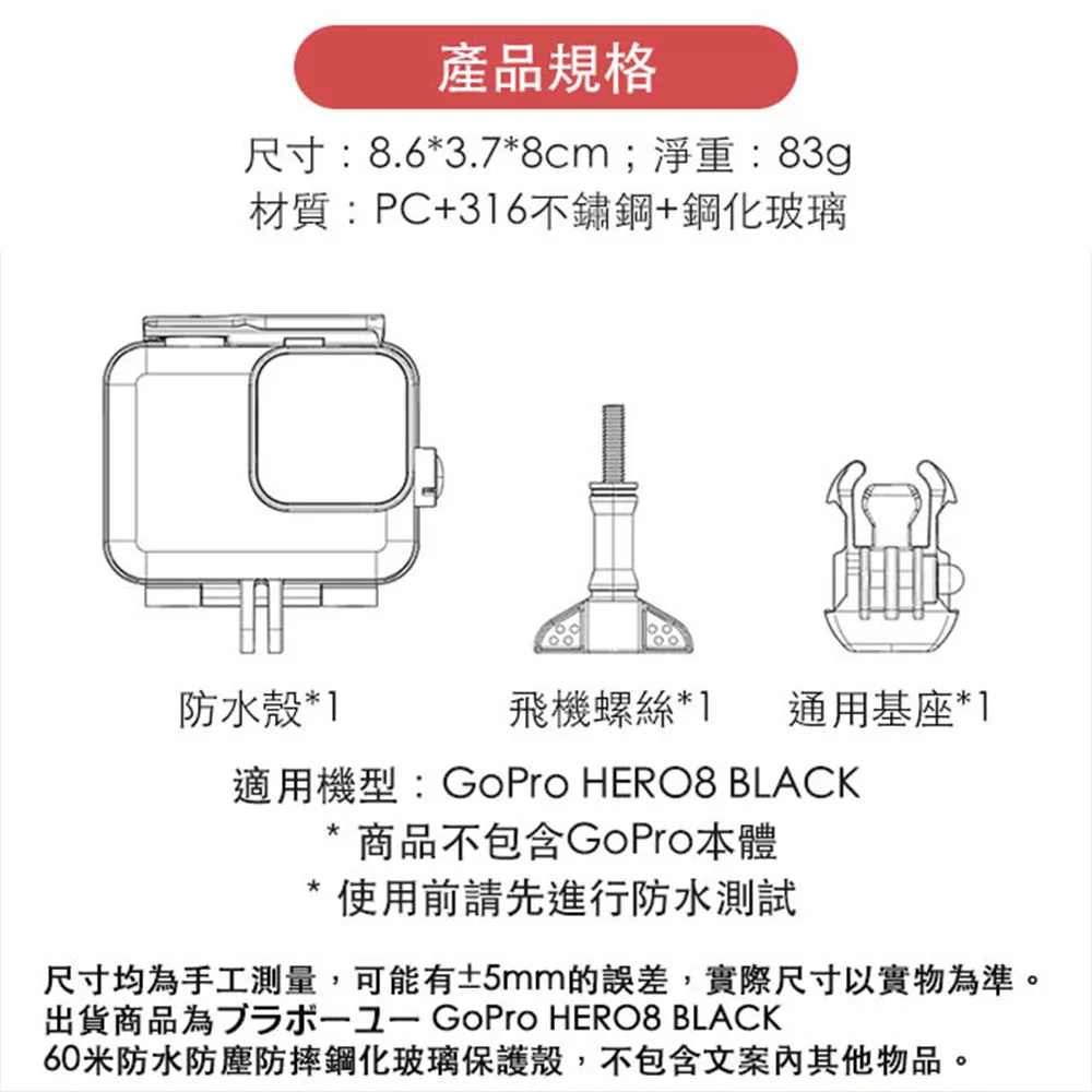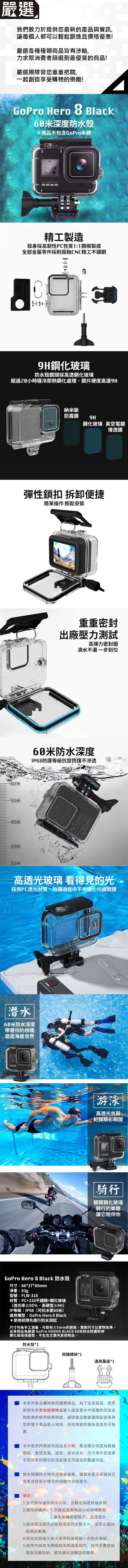 【嚴選】GoPro HERO8 BLACK 60米防水防塵防摔鋼化玻璃保護殼