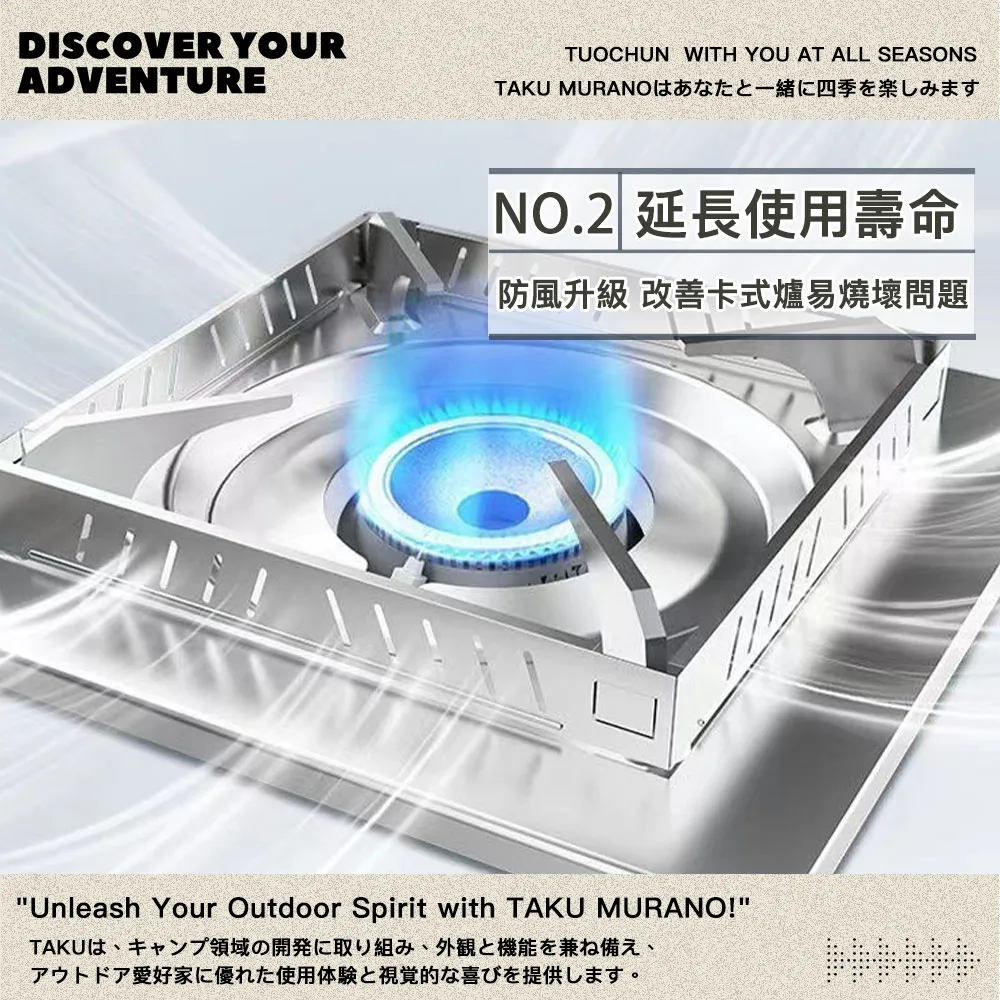 聚火節能,40個進氧口均衡火焰 防風升級,延長卡式爐壽命 立體防風,無懼火苗熄滅
