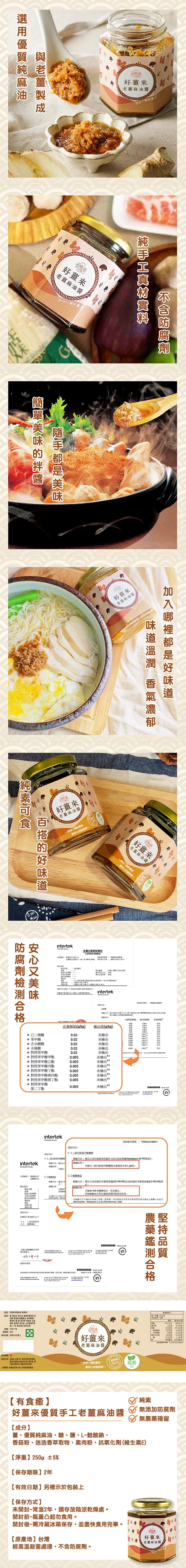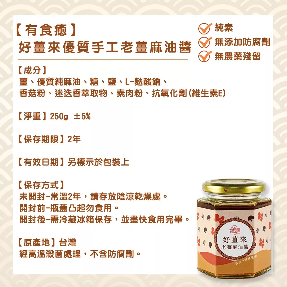 純手工真材實料,天然美味好安心 食品檢測通過,不添加防腐劑 純素可用,超百搭拌醬