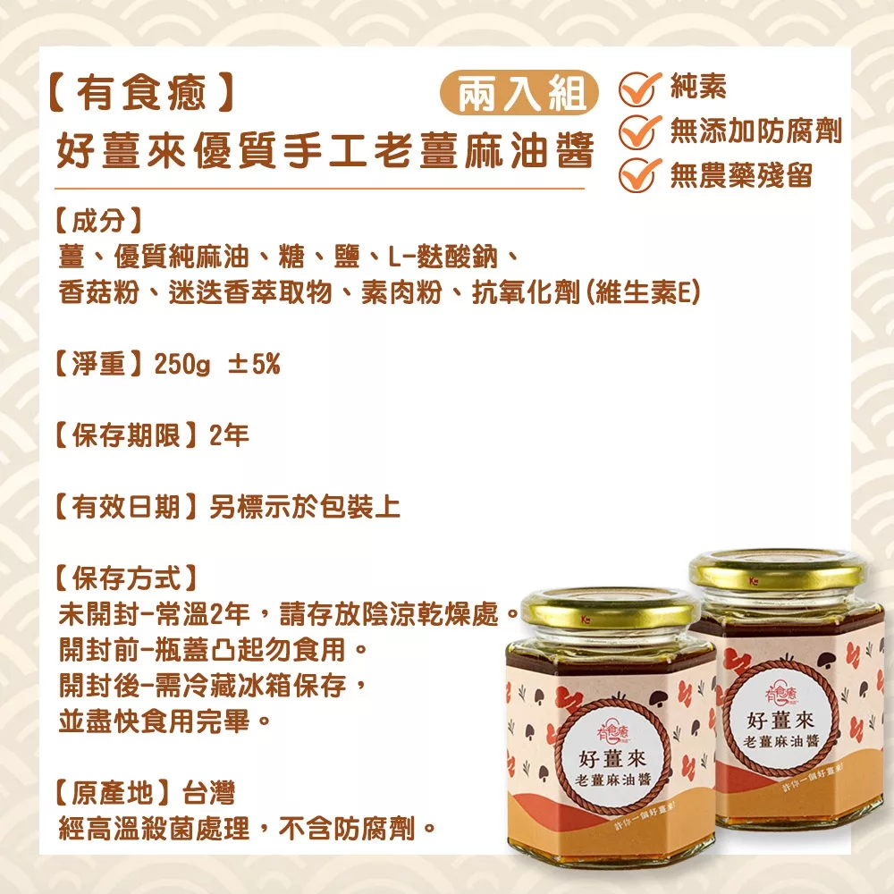 純手工真材實料,天然美味好安心 食品檢測通過,不添加防腐劑 純素可用,超百搭拌醬