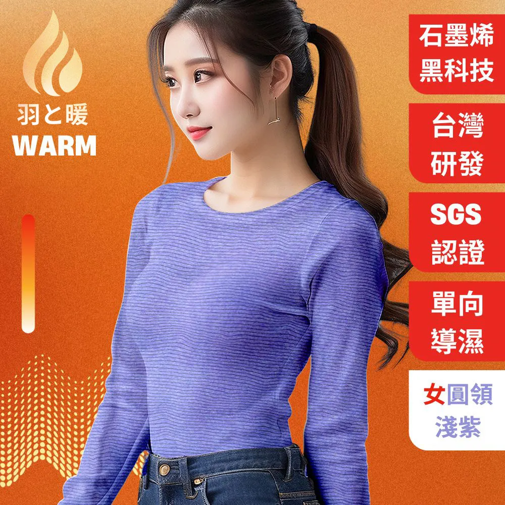 【羽和暖SWARM】台灣研發單向導濕石墨烯極暖發熱衣 女圓領 淺紫