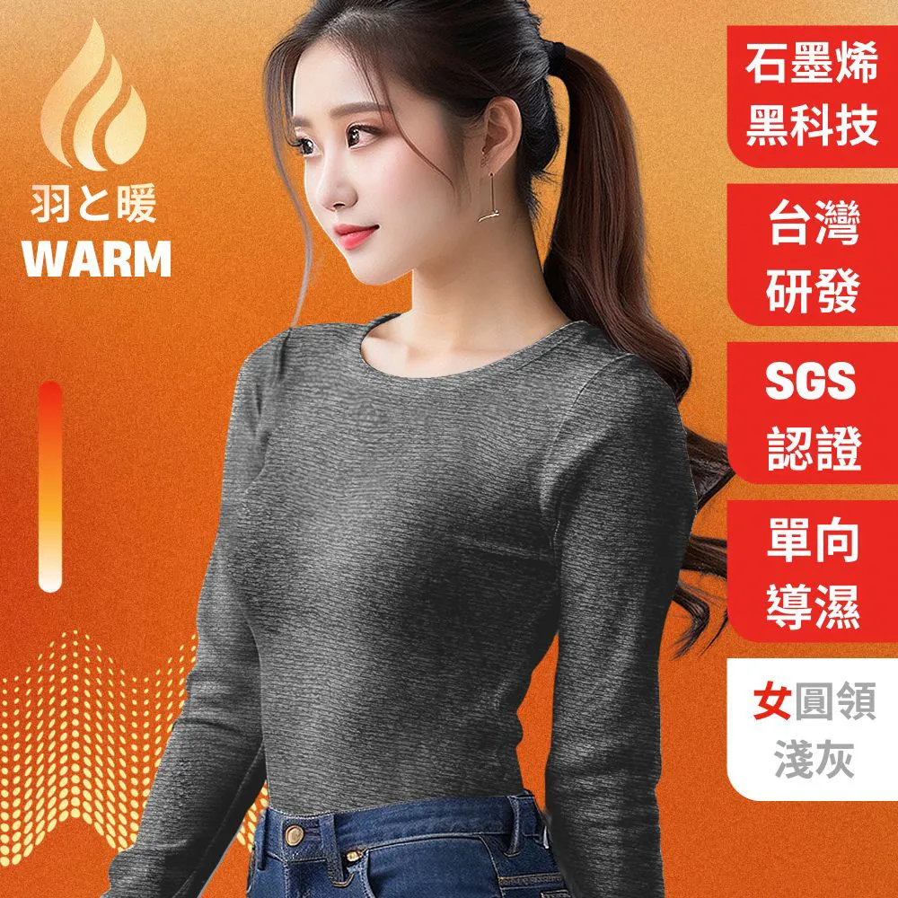 / 【羽和暖SWARM】台灣研發單向導濕石墨烯極暖發熱衣 女圓領 淺灰