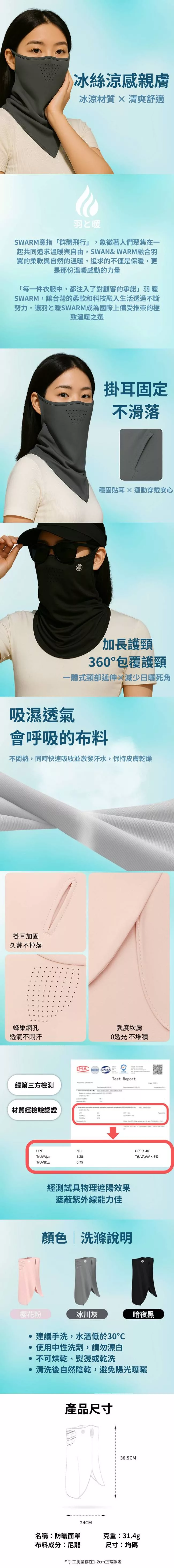 【羽和暖SWARM】戶外清涼騎行通勤面罩 遮陽透氣面巾