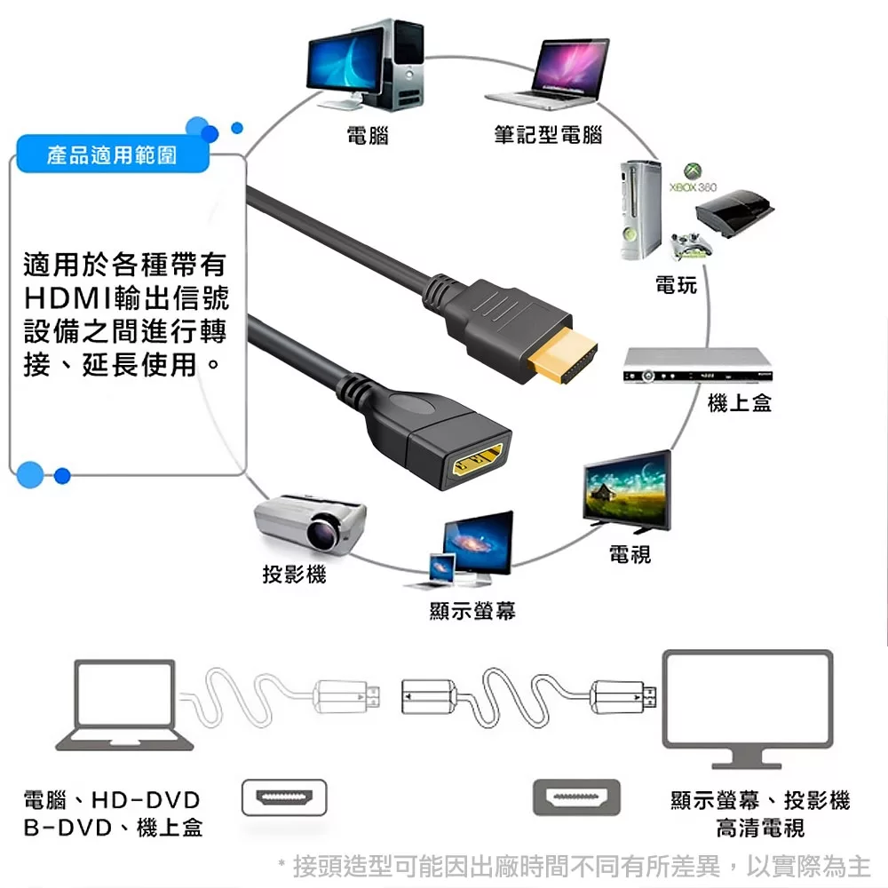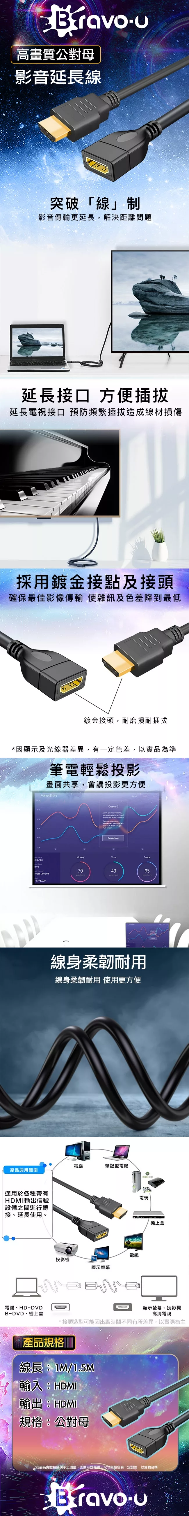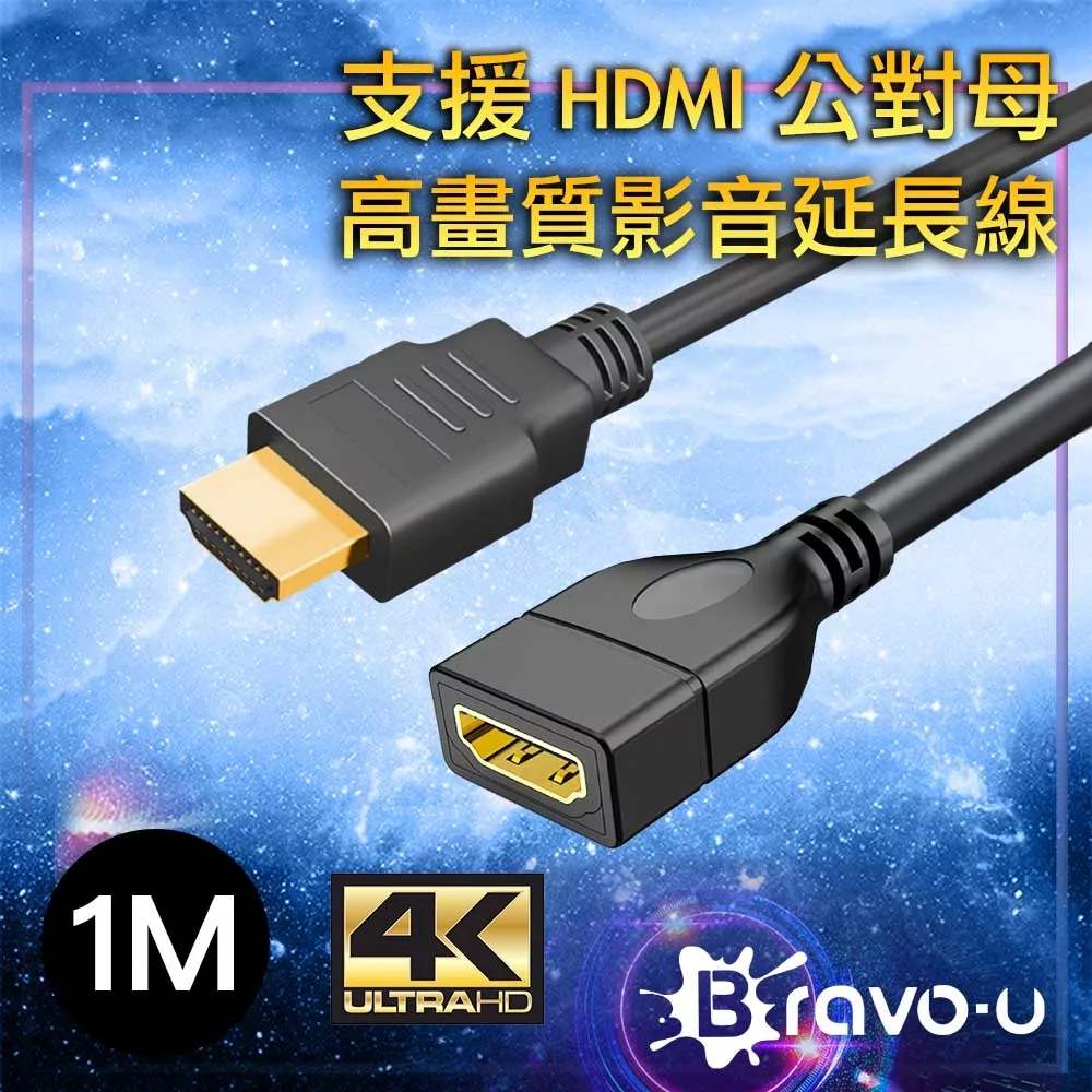 【Bravo-u】4K UHD 高畫質影音延長線1M(公對母)