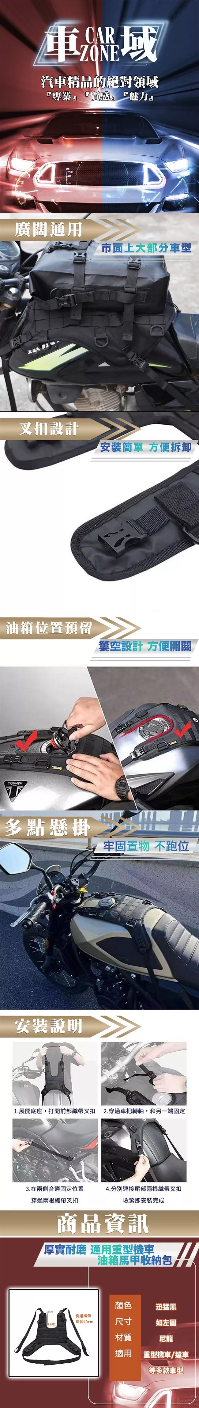 / 【CarZone車域】厚實耐磨 通用重型機車油箱馬甲收納包(迅猛黑)