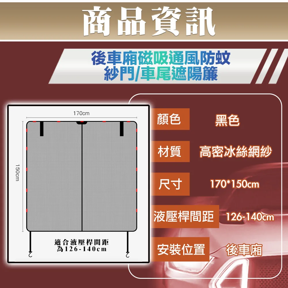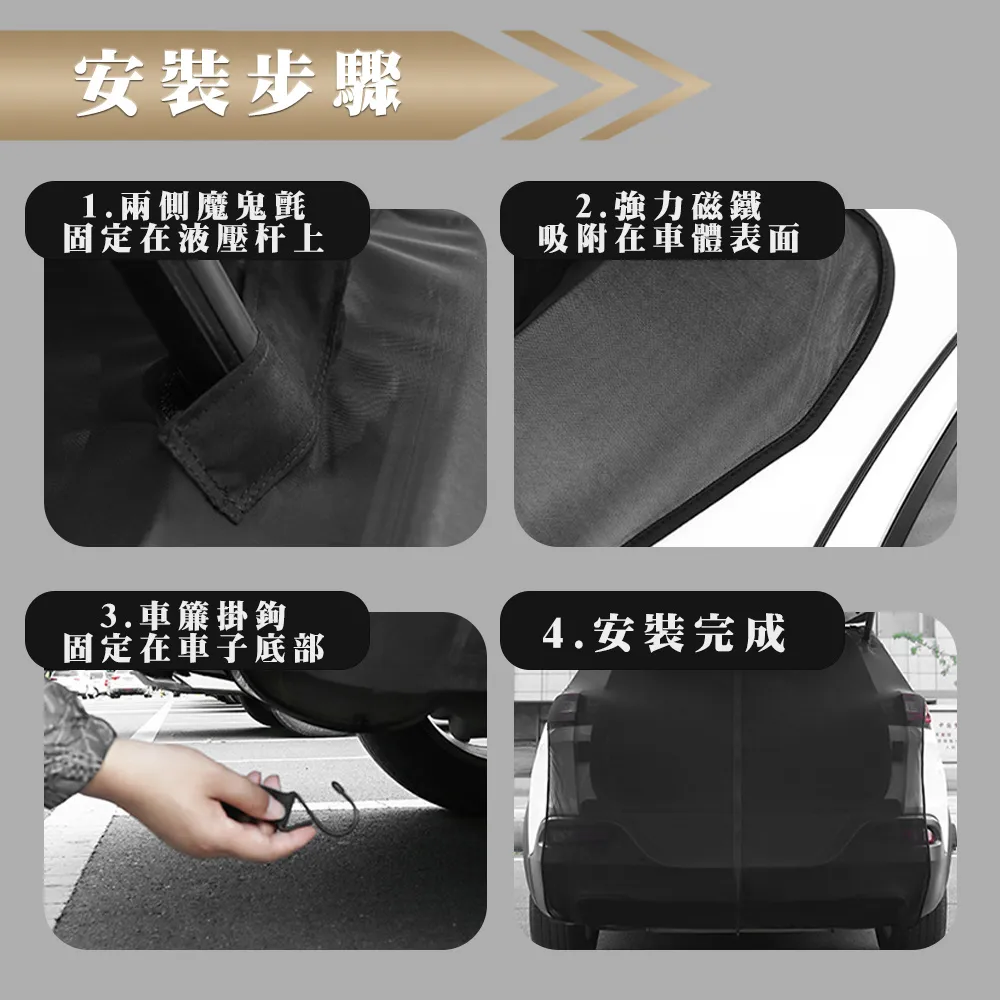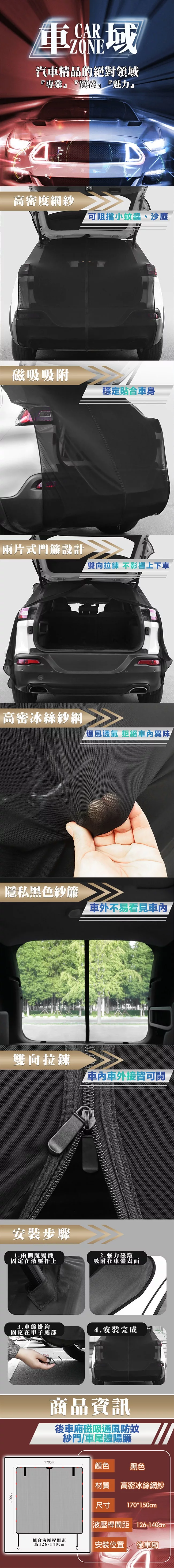 高密度網紗,可阻擋蚊蟲、沙塵 磁吸吸附,可穩定貼合車身 兩片式門簾設計,不影響上下車