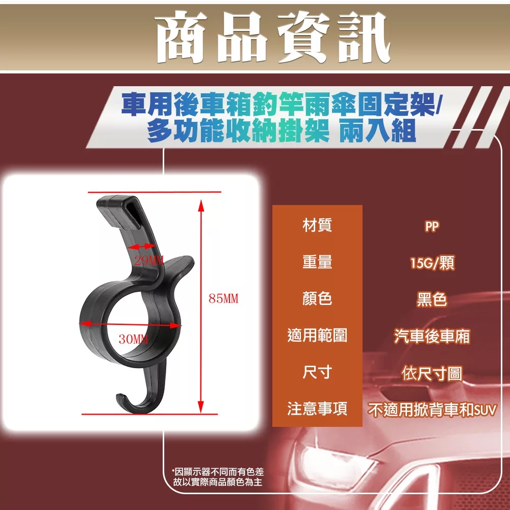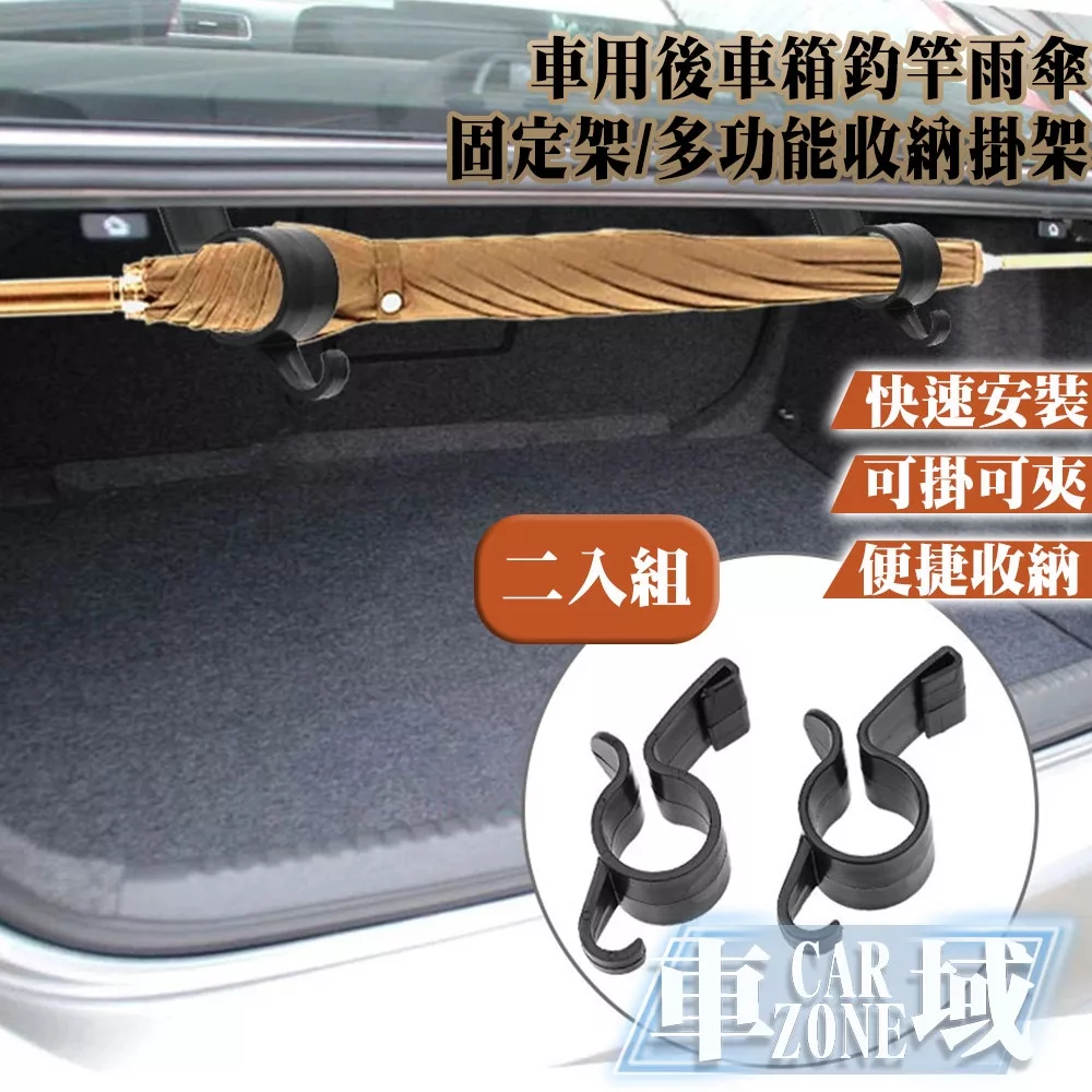 【CarZone車域】車用後車箱釣竿雨傘固定架/多功能收納掛架 兩入組
