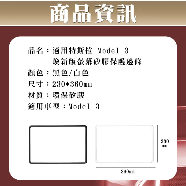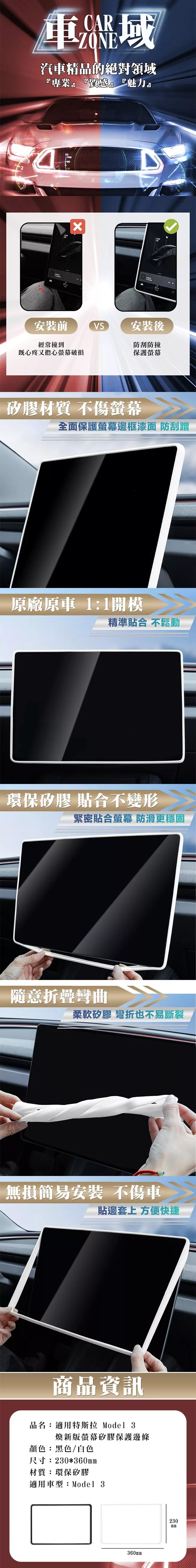 / 【CarZone車域】適用特斯拉 Model 3 煥新版螢幕矽膠保護邊條