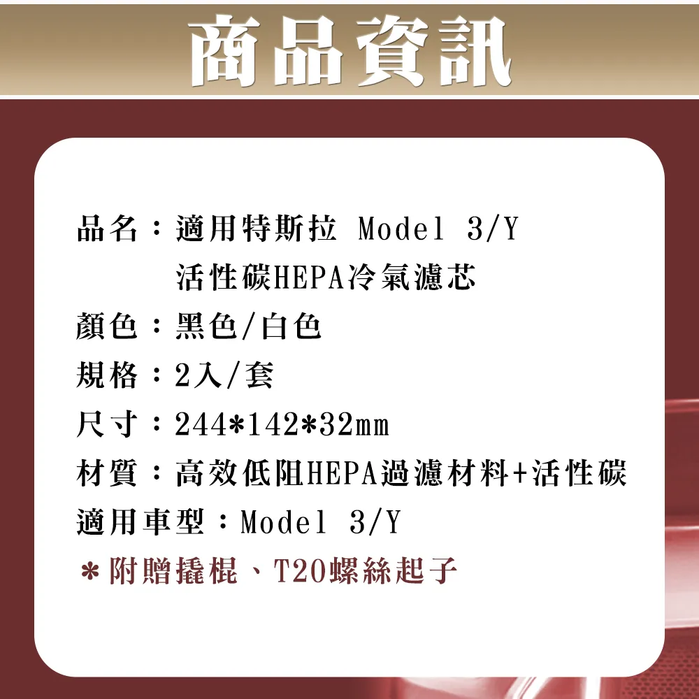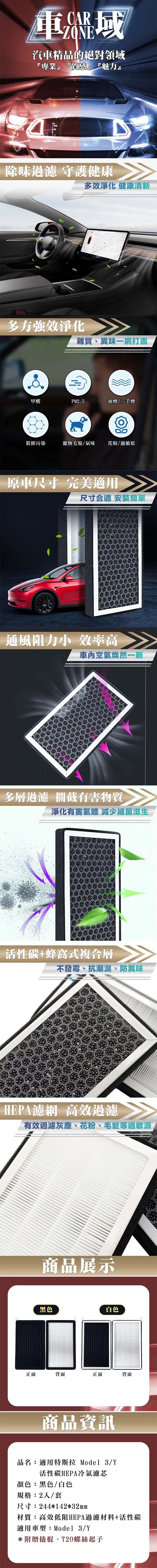 【CarZone車域】適用特斯拉 Model 3/Y 活性碳HEPA冷氣濾芯