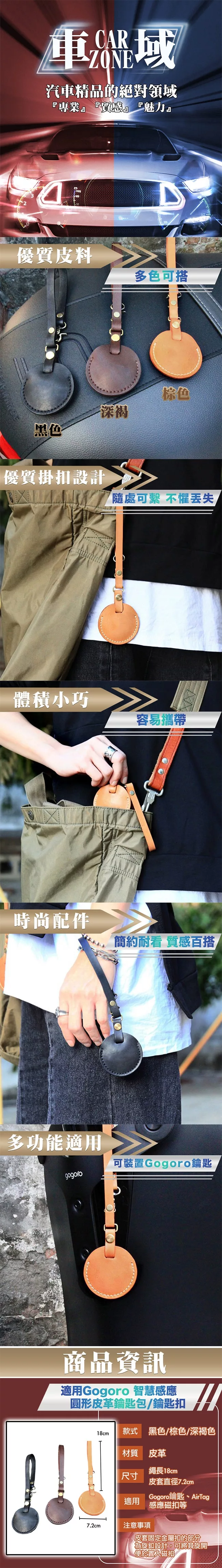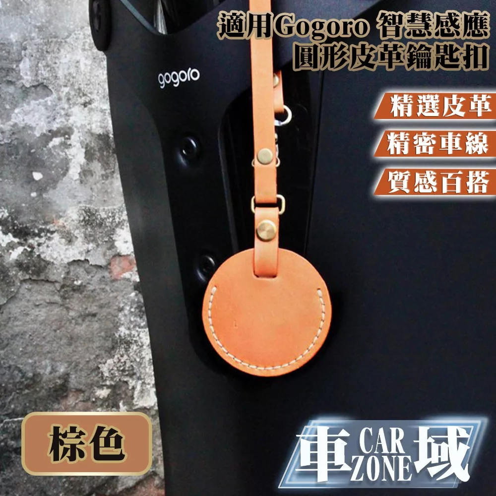 / 【CarZone車域】適用Gogoro 智慧感應圓形皮革鑰匙包/鑰匙扣