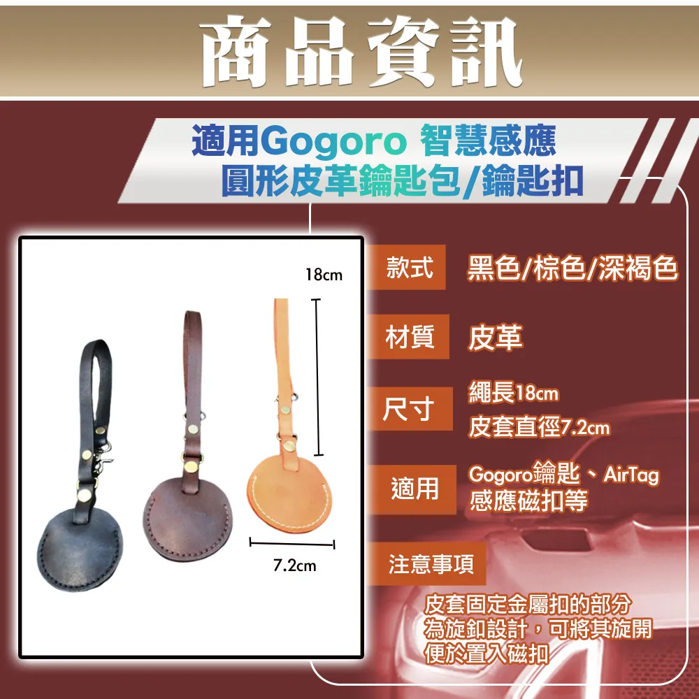 【CarZone車域】適用Gogoro 智慧感應圓形皮革鑰匙包/鑰匙扣 數量