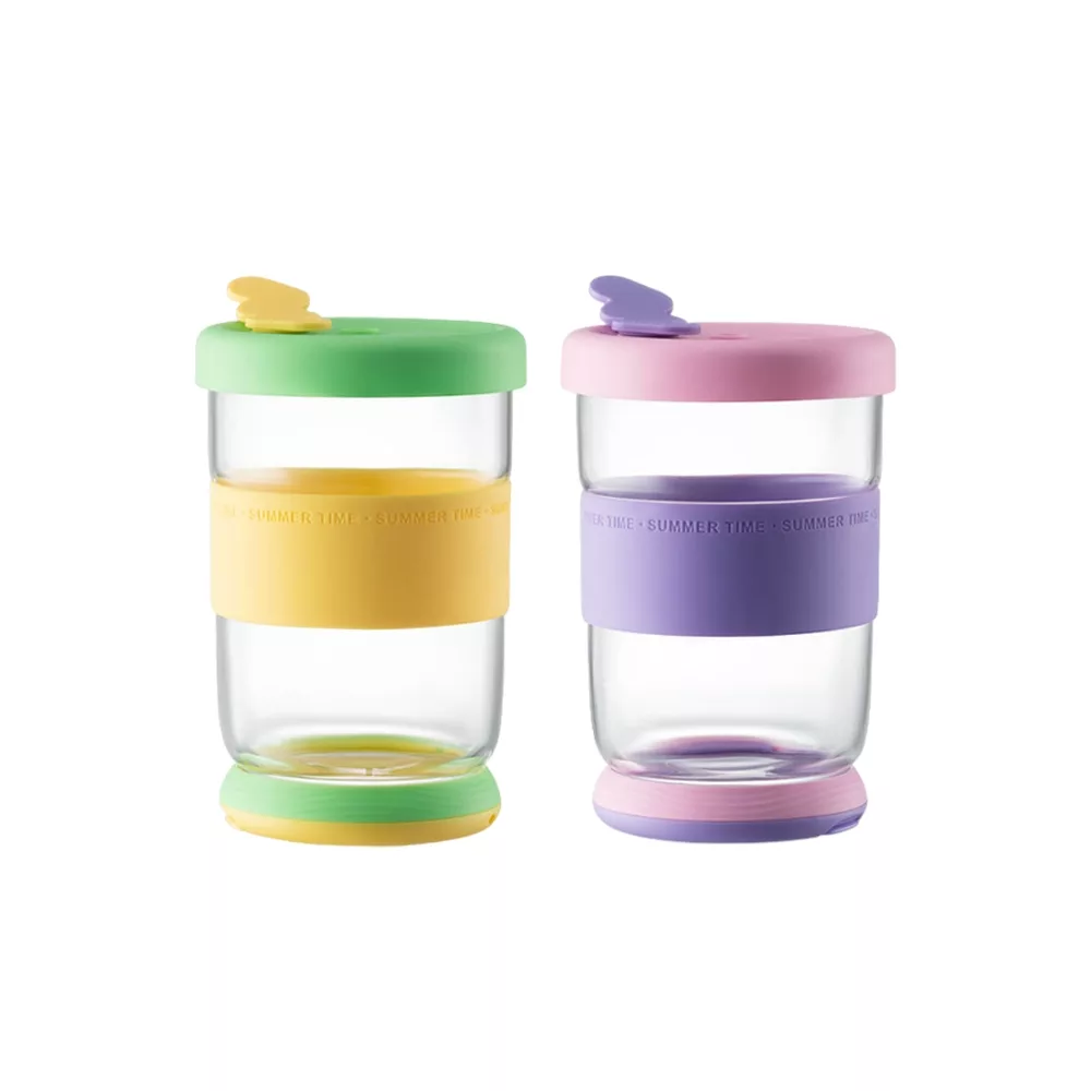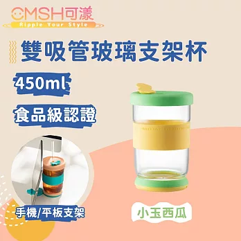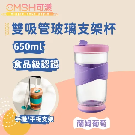 【CMSH可漾】時尚雙色 外食族必備 雙吸管玻璃支架杯(450mL)
