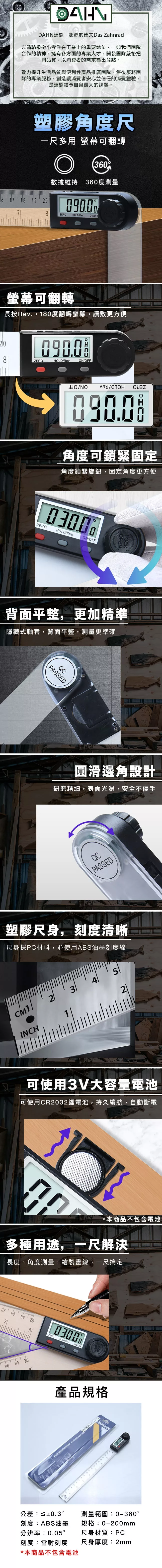 / 【DAHN 達恩】數位顯示電子角度尺/量角器/角度測量儀 200mm