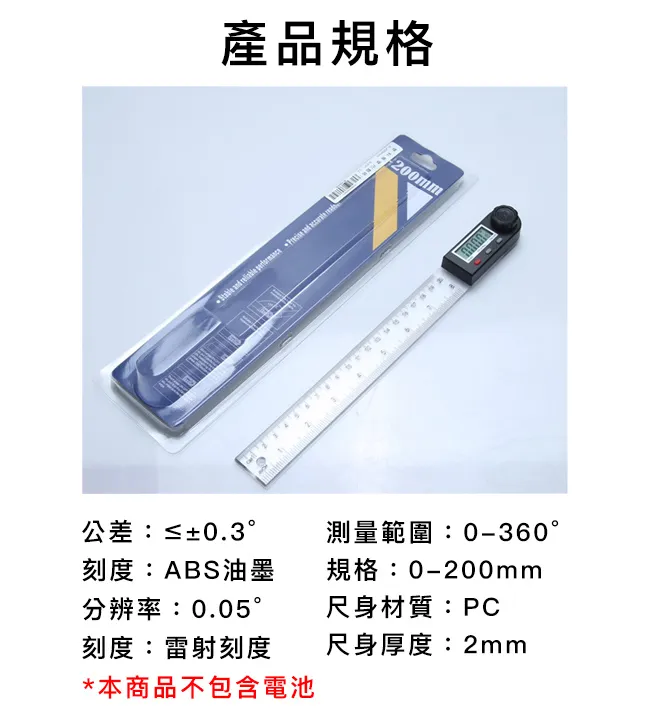 【DAHN 達恩】數位顯示電子角度尺/量角器/角度測量儀 200mm 數量