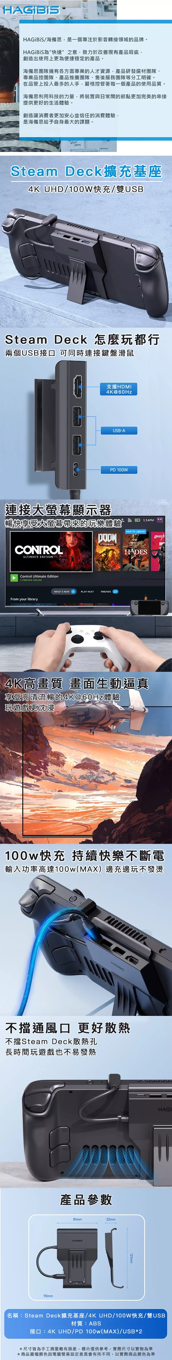 支援最高100w快速充電 雙USB接口可同時連接鍵盤滑鼠 支援4K@60Hz投影順暢 開模精準契合,不阻礙散熱風扇口 隨身攜帶,輕巧方便,不佔空間