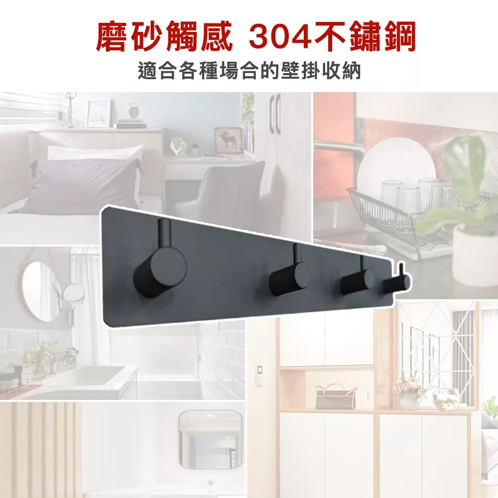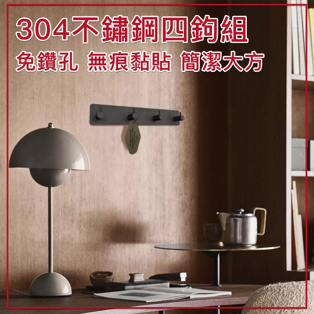 無痕免鑽孔 不鏽鋼黑色四鉤架