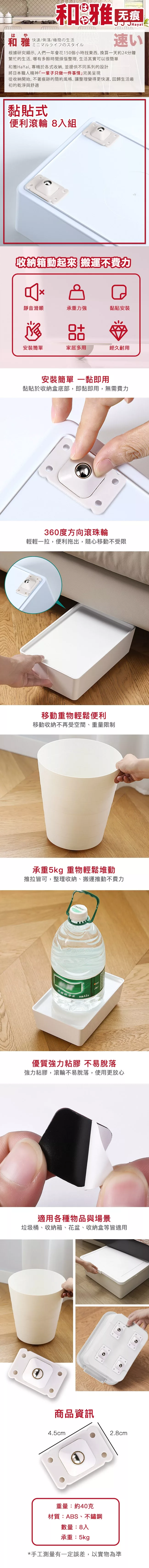 【HaYai和雅】無痕系列 黏貼式便利滾輪 8入組