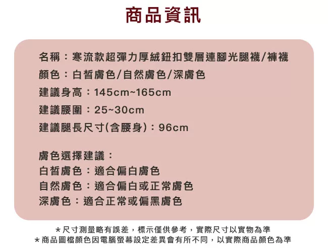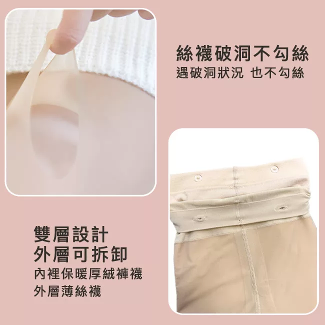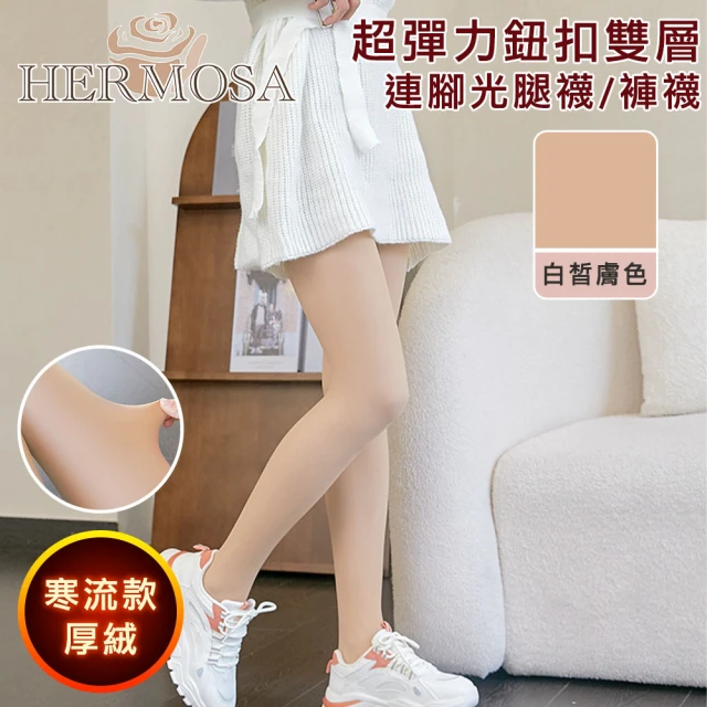 【HERMOSA】寒流款超彈力厚絨鈕扣雙層連腳光腿襪/褲襪