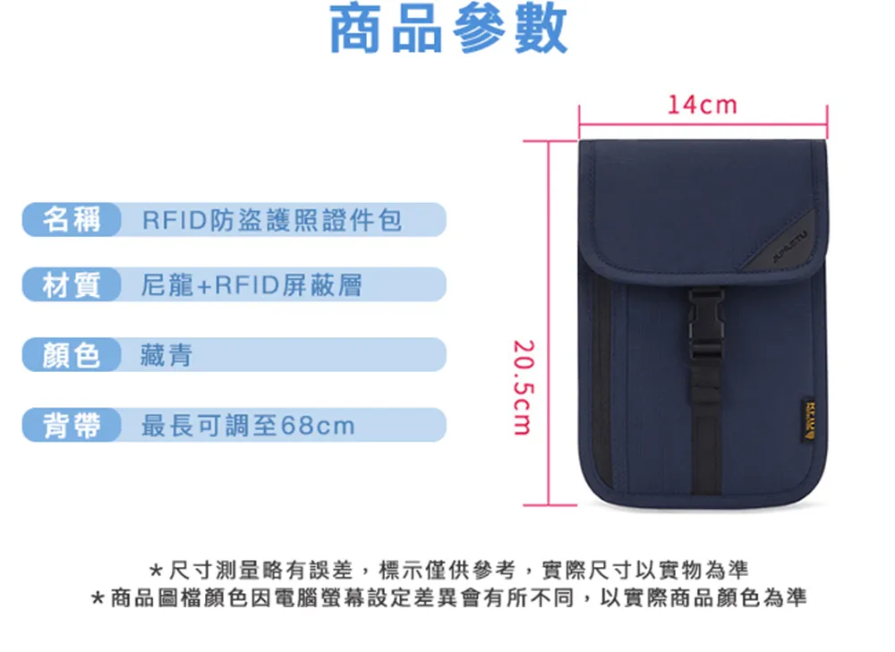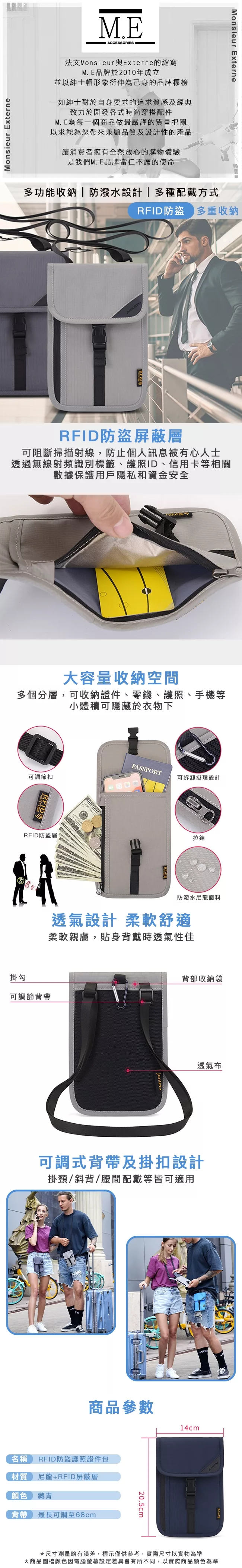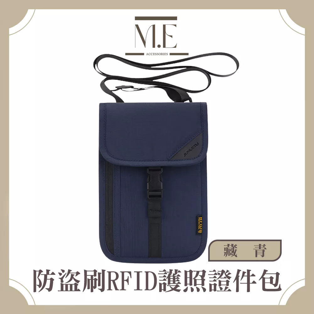 【M.E】出國旅行RFID防盜掛脖/斜背戶外貼身小包/護照證件包(藏青)