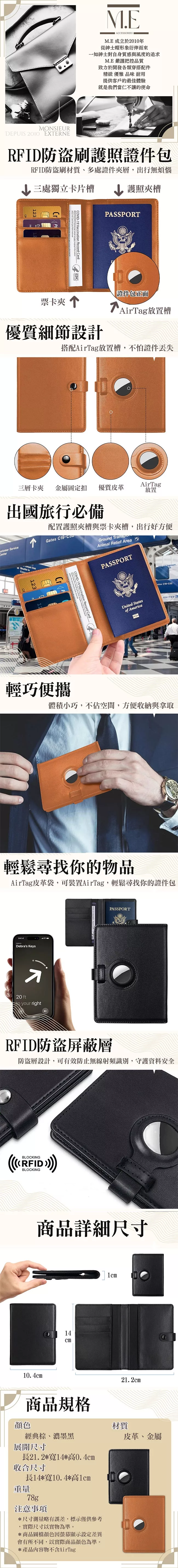 【M.E】可用Airtag 防盜刷RFID 防丟防刮多功能護照證件套