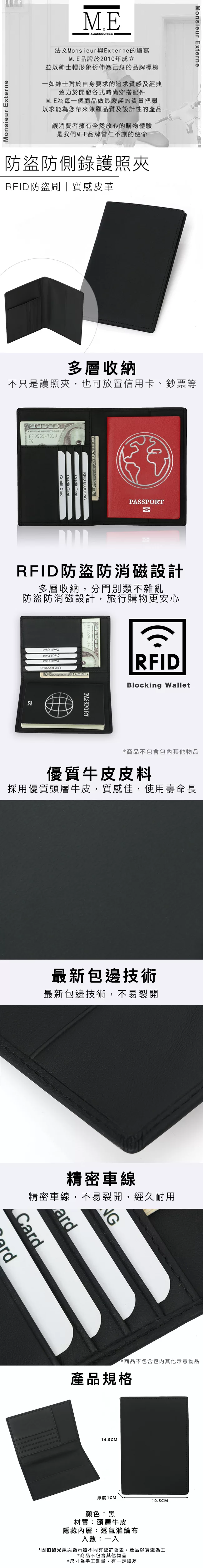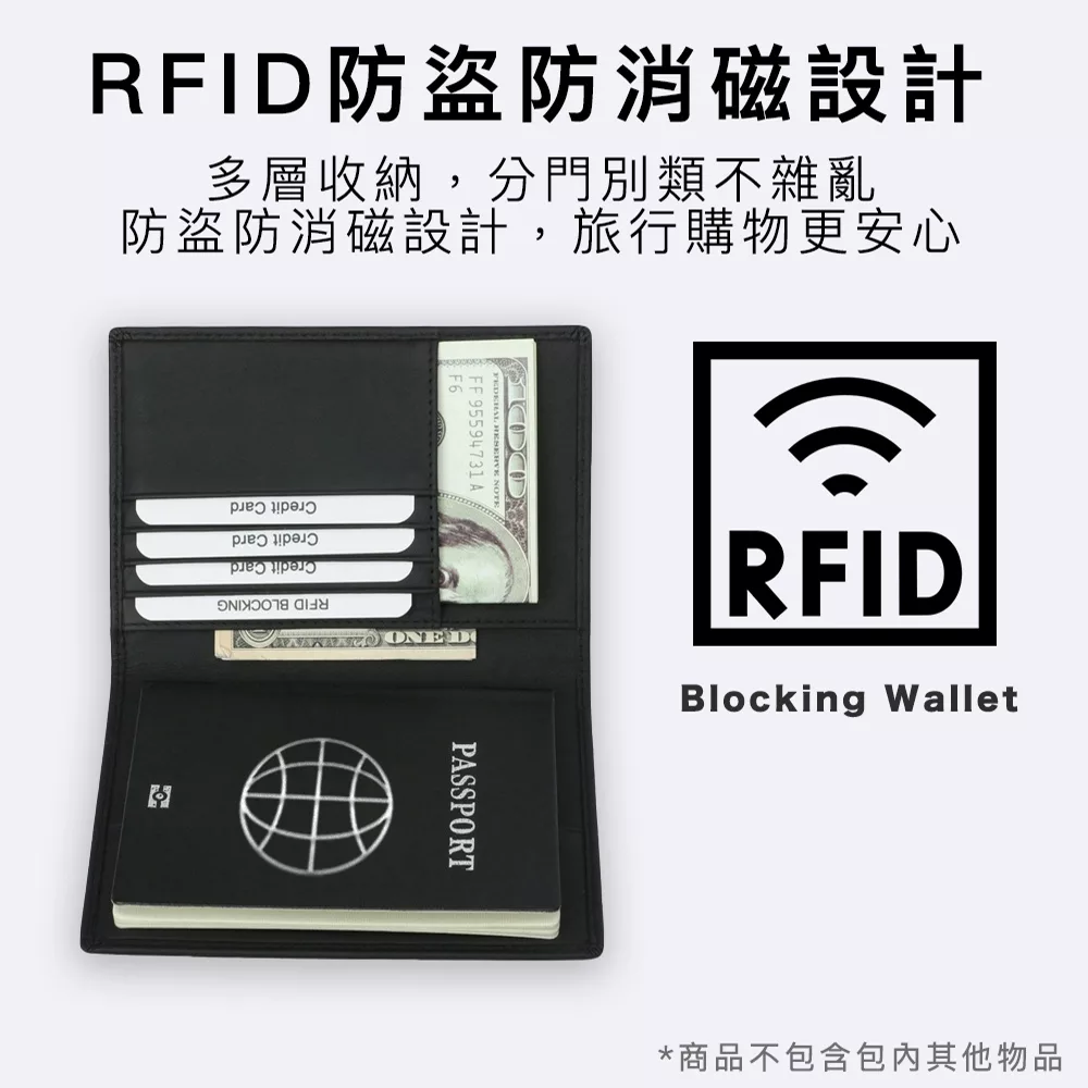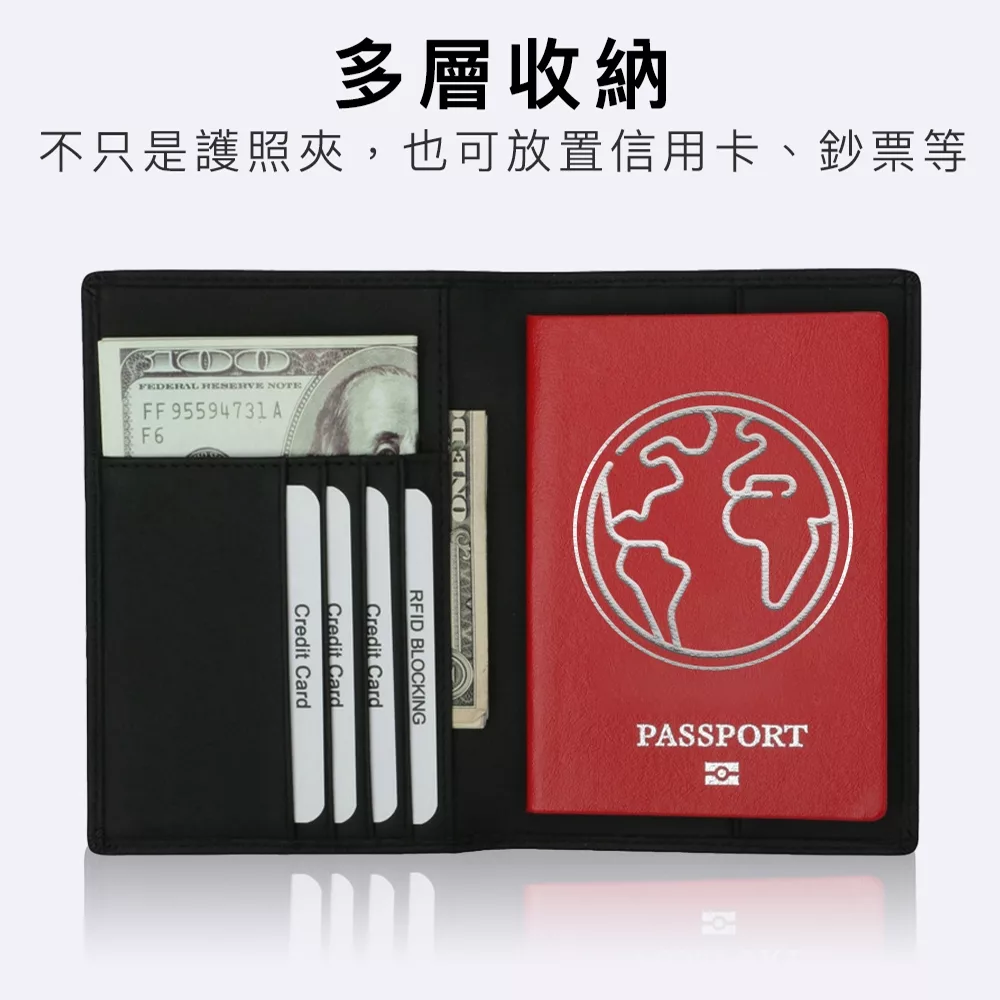 優質牛皮皮料,手感佳 防盜防側錄,阻絕個資被掃描竊取 一包多用,是錢包也是護照夾