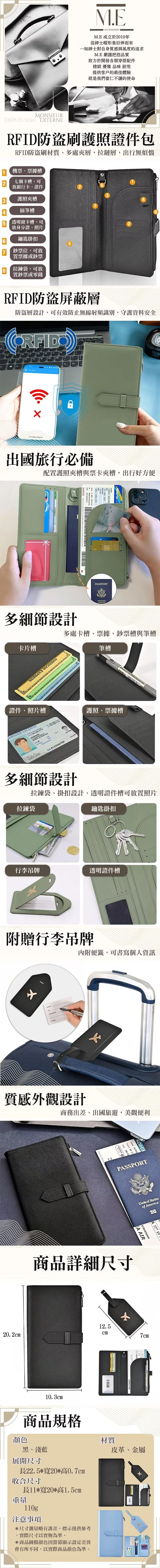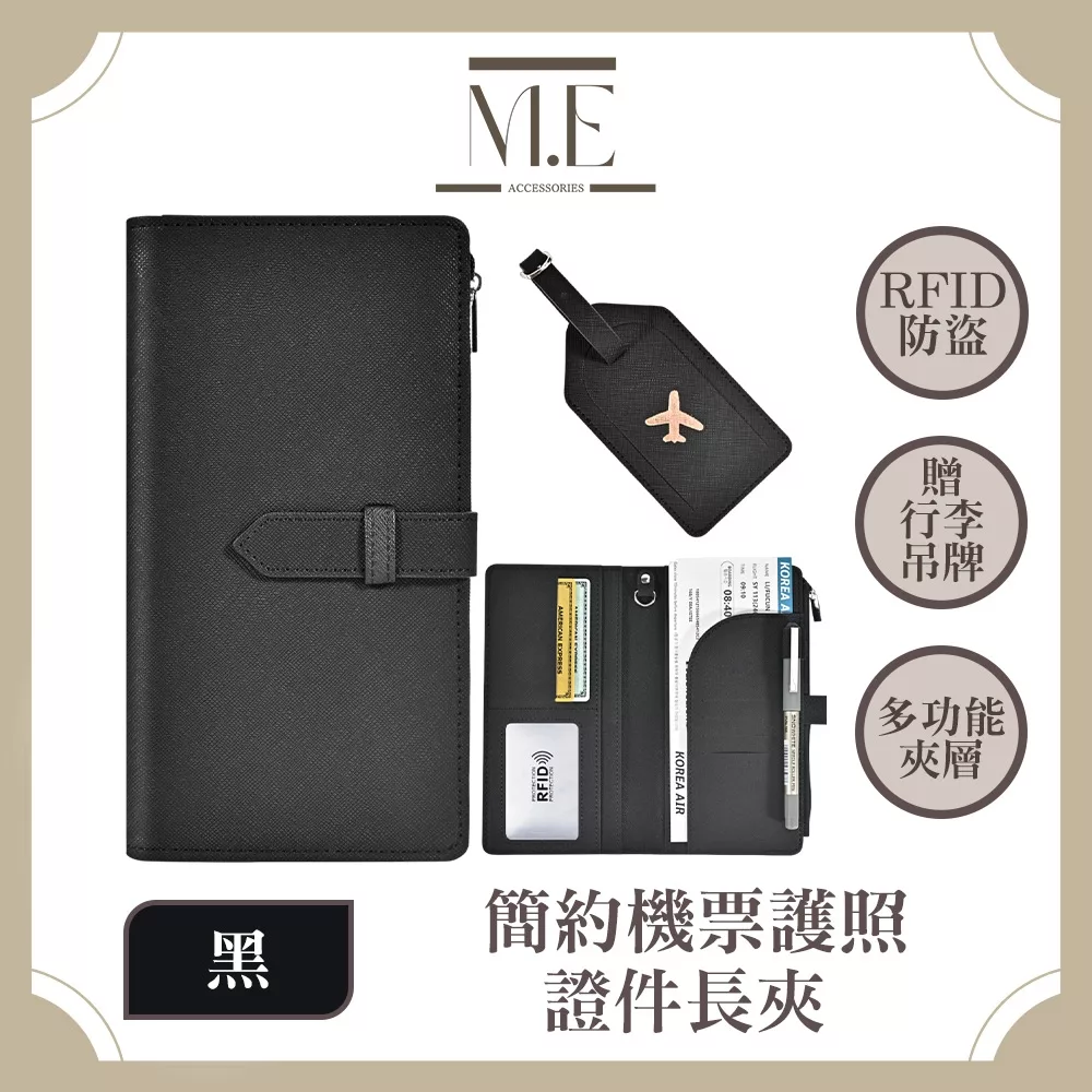 【M.E】多功能防盜刷RFID 簡約機票護照證件長夾 附贈行李吊牌