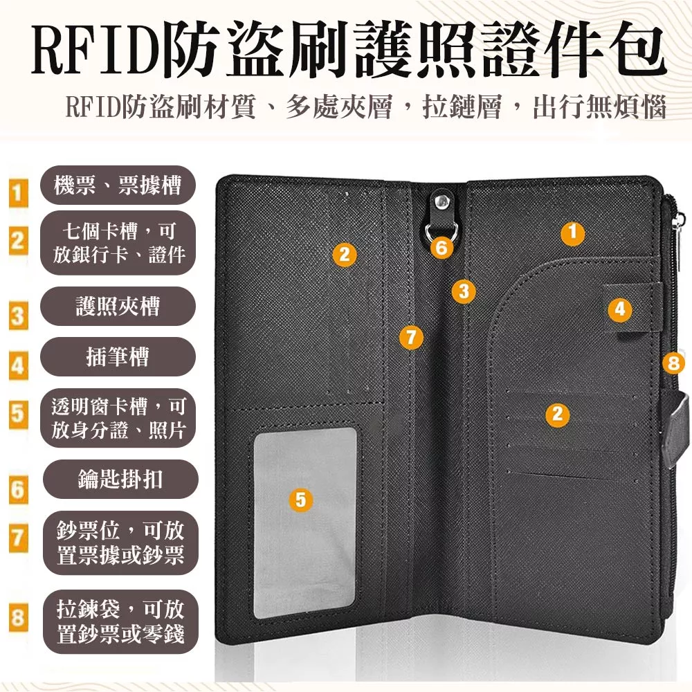【M.E】多功能防盜刷RFID 簡約機票護照證件長夾 附贈行李吊牌 數量