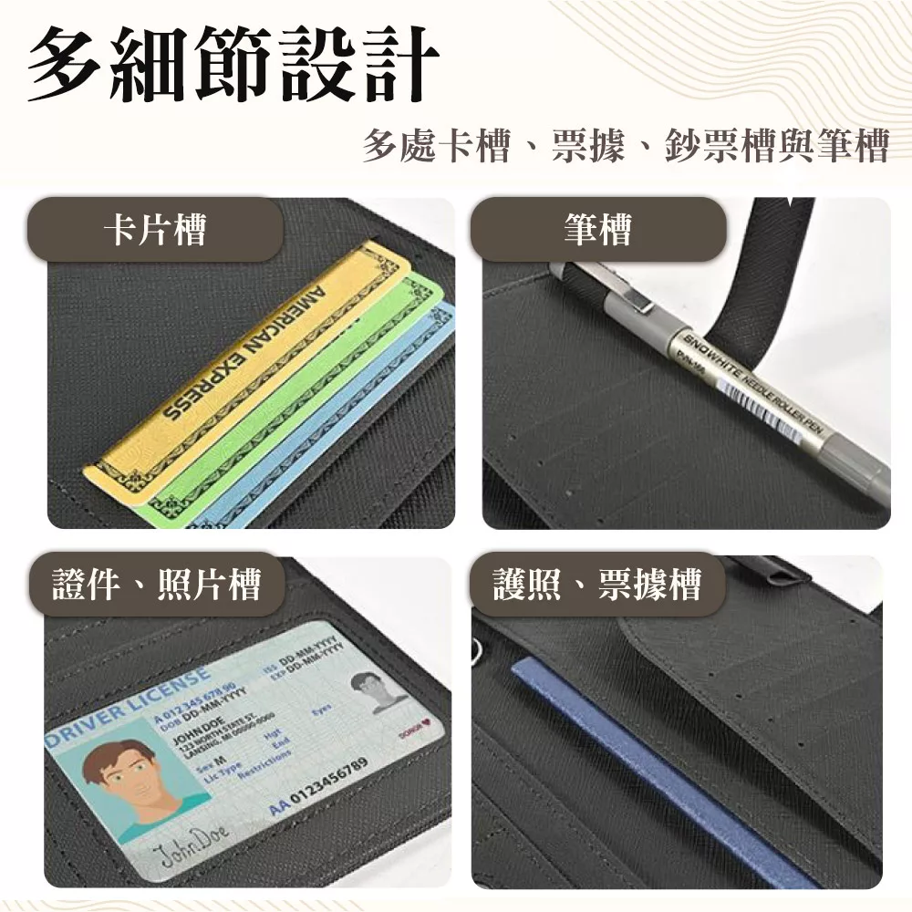 配置護照與票卡槽,出國旅行必