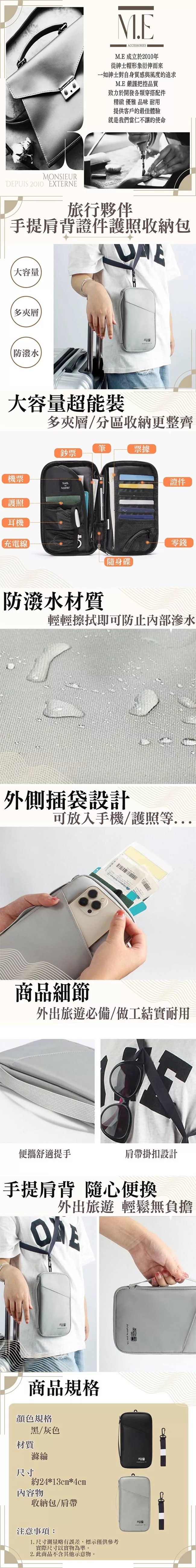/ 【M.E】旅行夥伴 日系極簡手提肩背證件護照收納包/機票護照夾