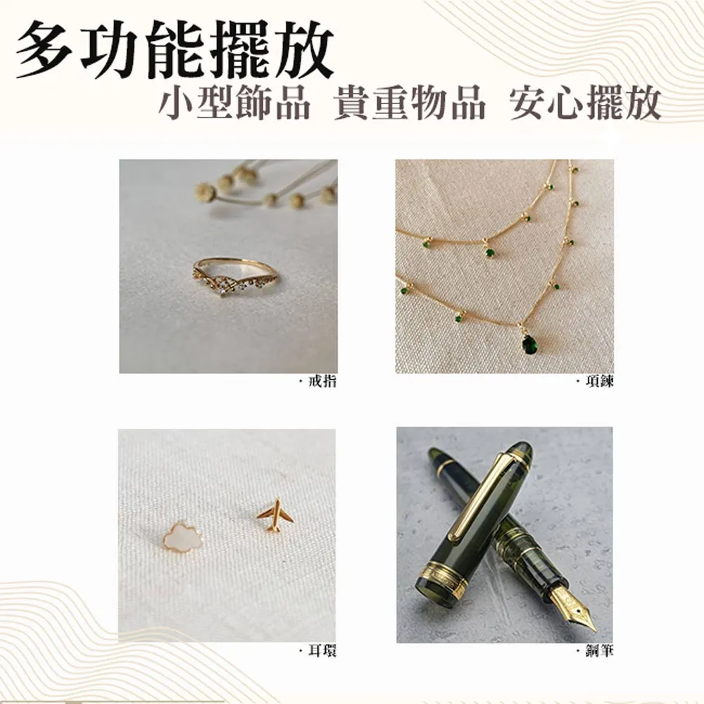多功能使用,平放垂掛都可以 可收納眼鏡/飾品/鋼筆等小物 捲式收納設計,收納拿取都方便