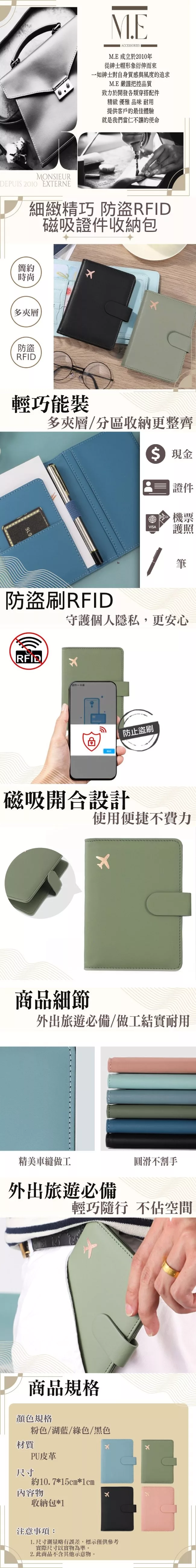 / 【M.E】細緻精巧 RFID防盜登機護照夾/多功能磁吸證件收納包
