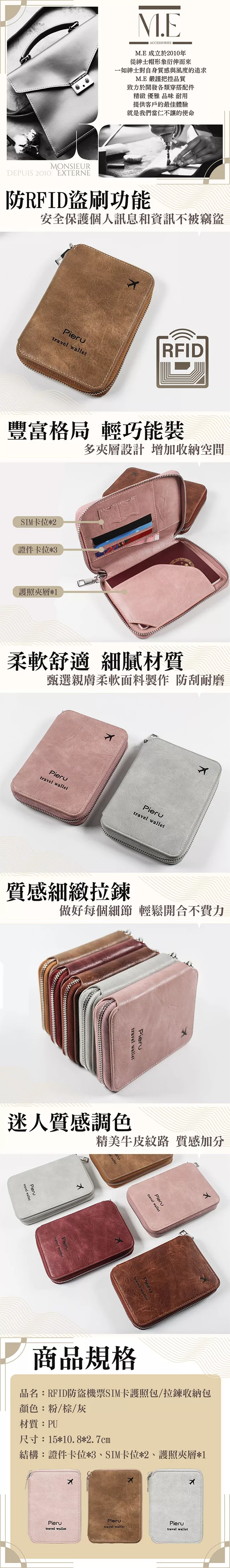 【M.E】霧感輕盈 RFID防盜機票SIM卡護照包/拉鍊收納包