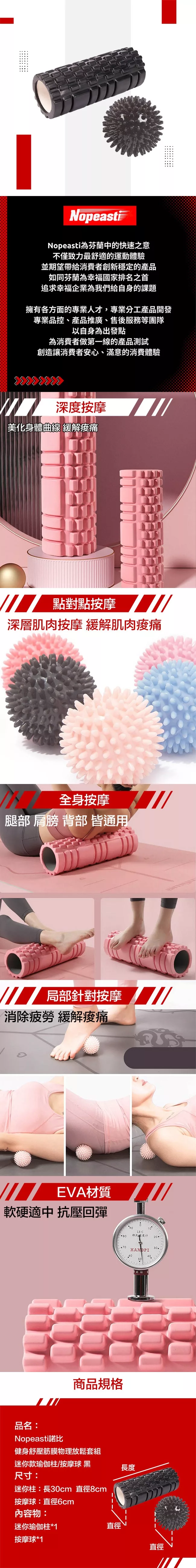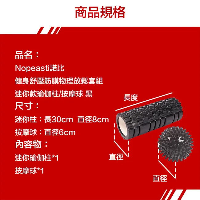 / 【Nopeasti 諾比】健身舒壓筋膜物理放鬆套組 迷你款瑜伽柱/按摩球(黑)