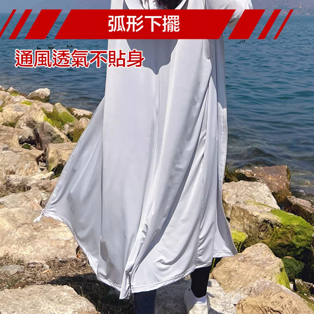 【Nopeasti 諾比】Cool夏涼感 強效抗UV 大帽簷速乾長版連帽外套