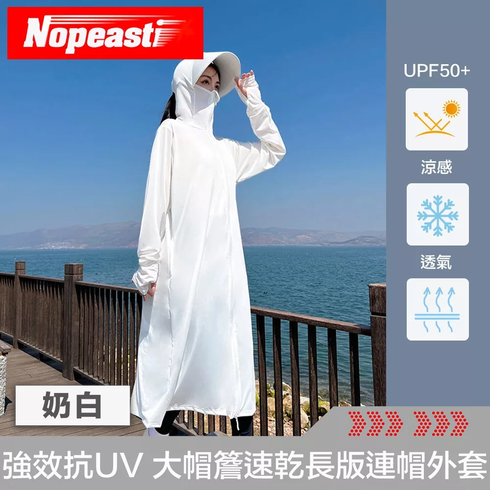 / 【Nopeasti 諾比】Cool夏涼感 強效抗UV 大帽簷速乾長版連帽外套